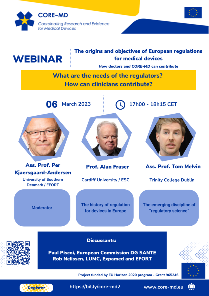 On 6th March 2023, the CORE-MD consortium organises its second webinar addressing the origins and objectives of European regulations for medical devices.