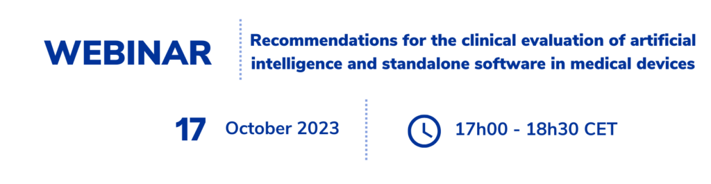 Register today for the upcoming CORE-MD Webinar on The clinical evaluation of Artificial Intelligence and standalone software: keeping the balance between benefit and risk. taking place on Monday 17 October 2023 from 17:00 to 18:30 CET.